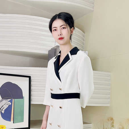 黑白經(jīng)典職場系列/白拼黑連衣裙